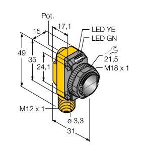 Turck QS18VN6LVQ8 Opto Sensor, retro-reflective sensor 3066453