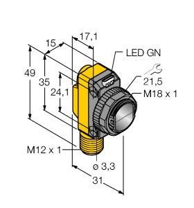TURCK QS186LE214Q8 Optosensor laser transmitter M12x1 4p IP67 3074732