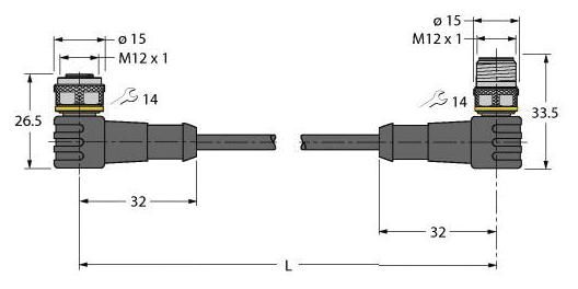 Turck WKC4T-2-WSC4T/TEL actuator and sensor control. PVC connecting cable 6625252