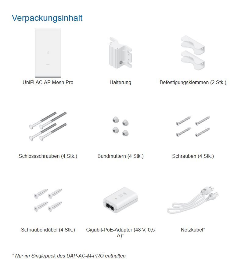 The article Ubiquiti USED UAP-AC-M-PRO_USED Ubiquiti Unifi Access Point Mesh Pro / Outdoor / 2.4 & 5 GHz / AC / 3x3 MIMO / UAP-AC-M-PRO / USED is currently not in stock und muss auftragsbezogen bestellt werden.