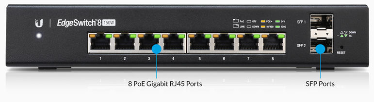 Ubiquiti EdgeSwitch 8, 150W, 8 Gigabit RJ45 ports, ES-8-150W