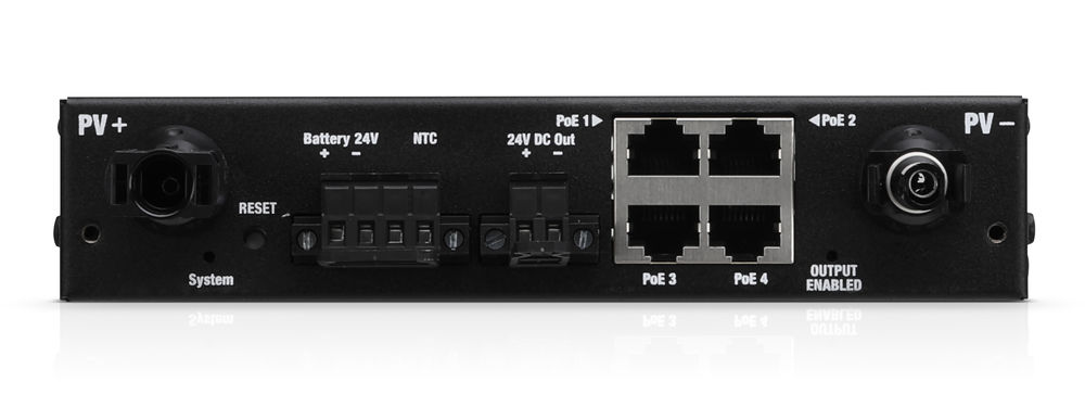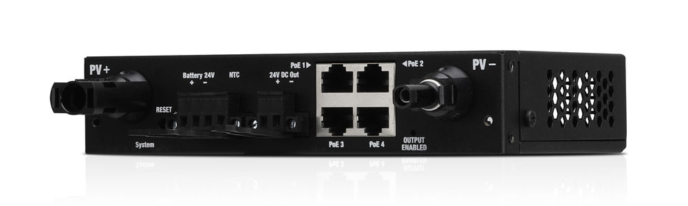 A PV power control MPPT output interfaces 24 VDC Passive PoE (Pins 4, 5+ 7, 8-)