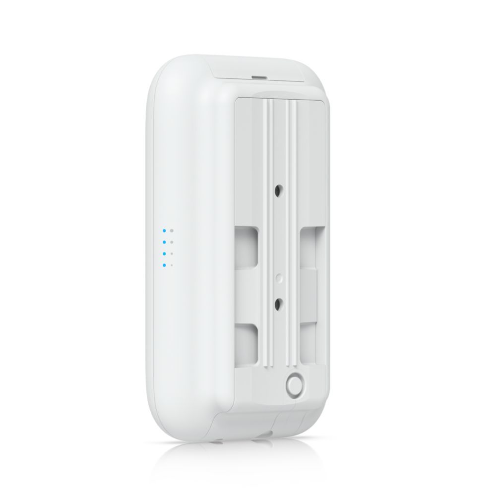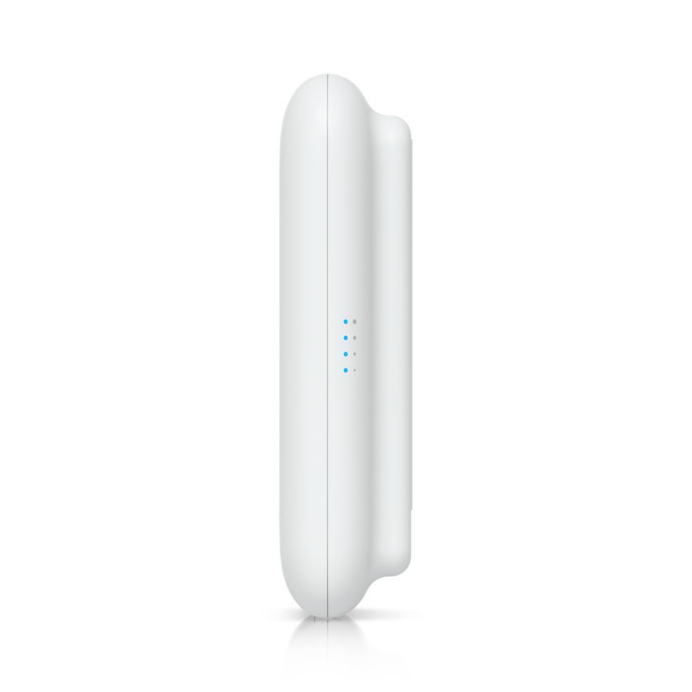 Technical Specifications Mechanical Dimensions 5.4 x 3.3 x 3,3 cm ( 1,3 inch ) (137 x 84 x 34 mm) Weight 6.1 oz (173 g) Enclosure Materials UV-stabilized polycarbonate Mount Materials Polycarbonate, SGCC steel, plastic Pole mount diameter 1~5,1 cm ( 2 inch ) on pipe OD Wind survivability 7.5 lbf at 125 mph (33.2 N at 200 km/h) Weatherproof IPX6 Hardware Network Interface (1) GbE RJ45 port Management Interface Ethernet Power Method PoE Power Supply UniFi PoE Switch Supported Voltage Range 44–57 VDC Max. power consumption 8W Max. transmit power