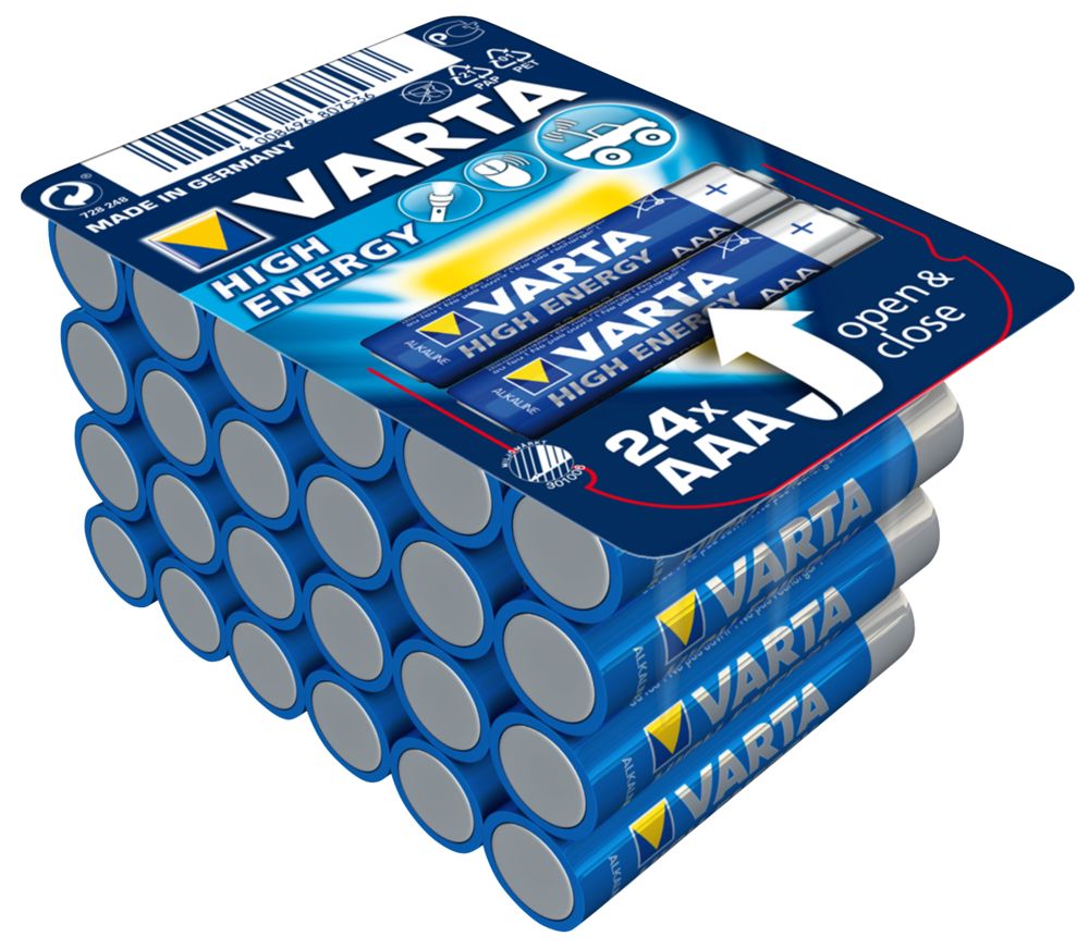 Micro battery VARTA ''HIGH ENERGY'' 1.5V, type AAA/LR03, household pack of 24