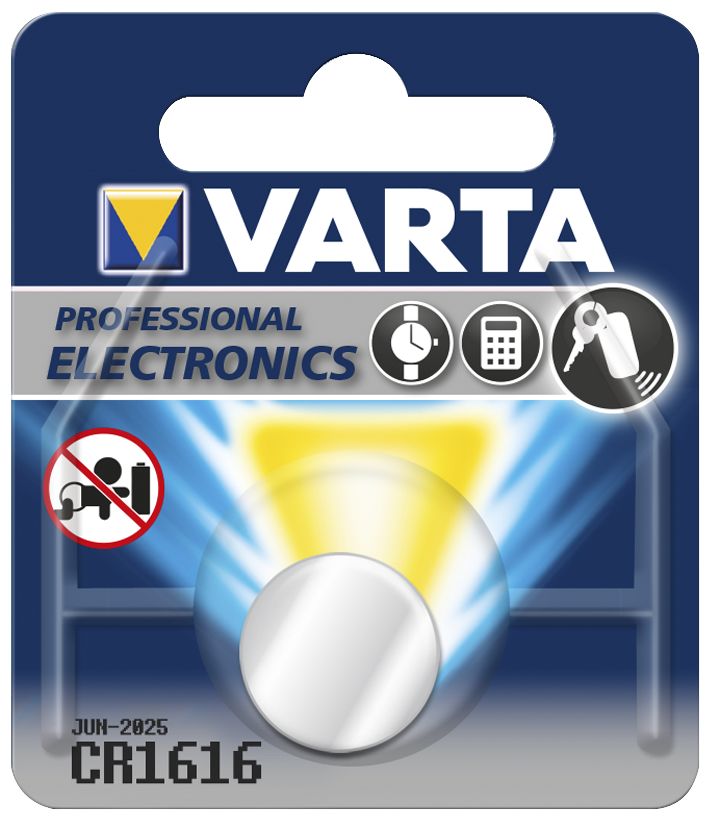 We offer you Lithium button cell VARTA CR 1616, 55mAh, 3V blister of 1 always at the best possible price. We can give you a discount of 2% on Lithium button cell VARTA CR 1616, 55mAh, 3V blister of 1 if you choose payment in advance on ordering.