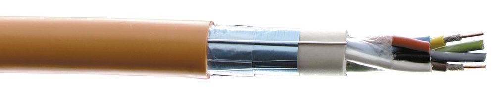 for high-voltage installation purposes or for burial. Structure: Conductor: bare copper conductor, single-wire, 0.8 mm diameter Core insulation: cross-linked halogen-free, ceramizable polymer mixture Core identification in accordance with VDE 0815 Basic color of the four in each bundle: Pair 1: blue-red Pair 2: gray-yellow Pair 3: green-brown Pair 4: white-black The individual bundles are identified by a numbered plastic identification spiral. Stranding: 2 cores to a pair - 4 pairs to a bundle - bundles stranded in layers Banding Shielding: Polyester-coated aluminum tape with 0.8 mm drain wire Outer sheath: halogen-free polymer mixture orange as fire alarm cable in red Technical specifications: Nominal voltage: 225 V Temperature range: -5 °C - +70 °C (during laying) -30 °C - +70 °C (after laying) Bending radius: 7.5 x cable diameter Tests: Flame retardancy: in accordance with EN 50266-2-4, IEC 60332-1, IEC 60332-3 Cat. C Insulation integrity FE 180: in accordance with VDE 0472 T. 814-IEC 60331 Functional integrity E 90: in accordance with DIN 4102-12 Properties: halogen-free fire retardant minimal smoke development no corrosive gases .