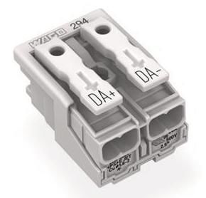 WAGO 294-4032 mains connection terminal without PE contact without locking feet DA-DA+ 2p white is offered by us in a sales unit of 1000 pieces If you need a larger quantity, you can contact us at any time. We will make a special offer for you