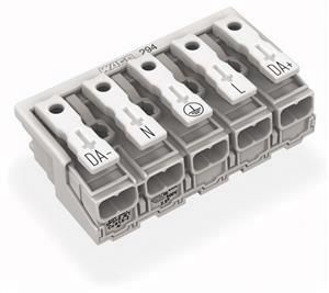 WAGO 294-5075 mains connection terminal without PE contact + locking feet DA-N PE L DA+5p ws