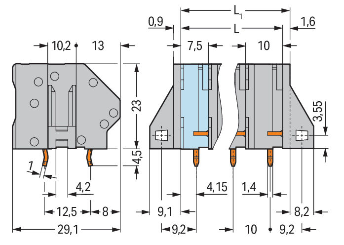 WAGO 745-1354/000-009/999-950 PCB terminal, 6 mm², pitch 10 mm