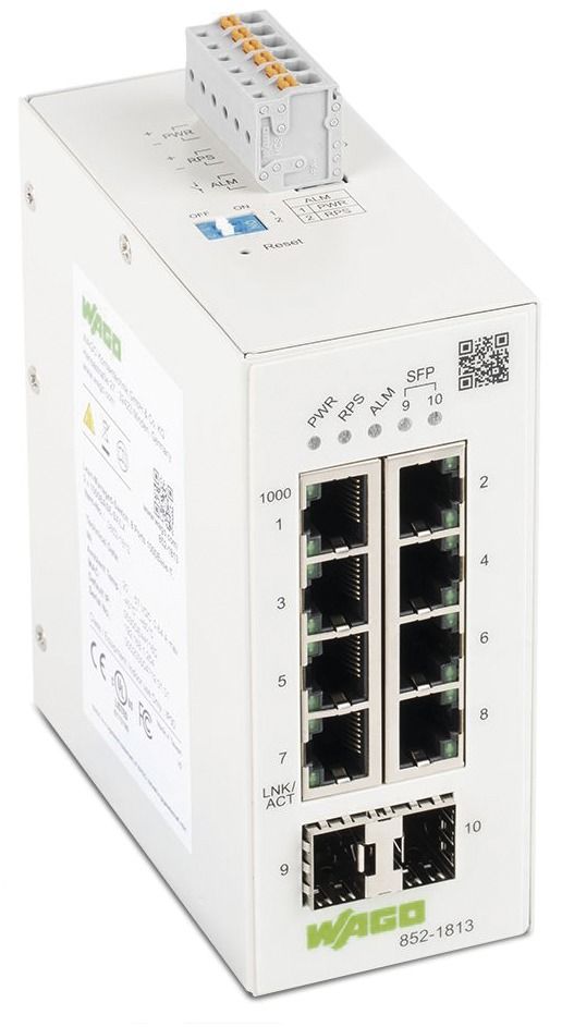 The article WAGO 852-1813 Lean Managed Switch 8 Port 1000Base-T 2-Slot 1000Base-SX/LX is currently in stock
