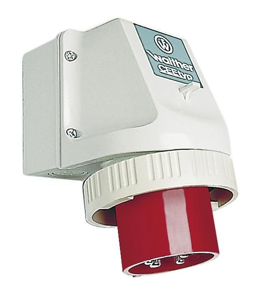 Walther wall device plug 16A 4P 400V 6h IP67 internal mount. Cable entry 2 above