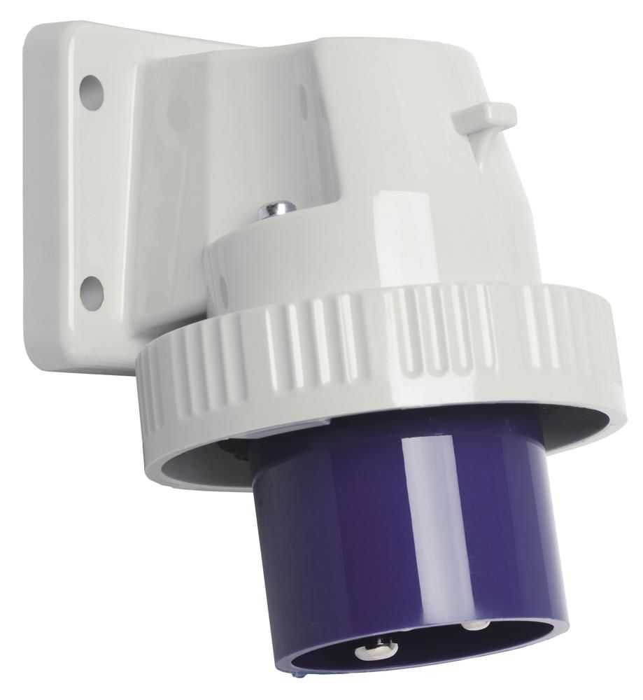 Walther attachment plug 16A 3P 230V 6h IP67 screwed on at an angle to the flange