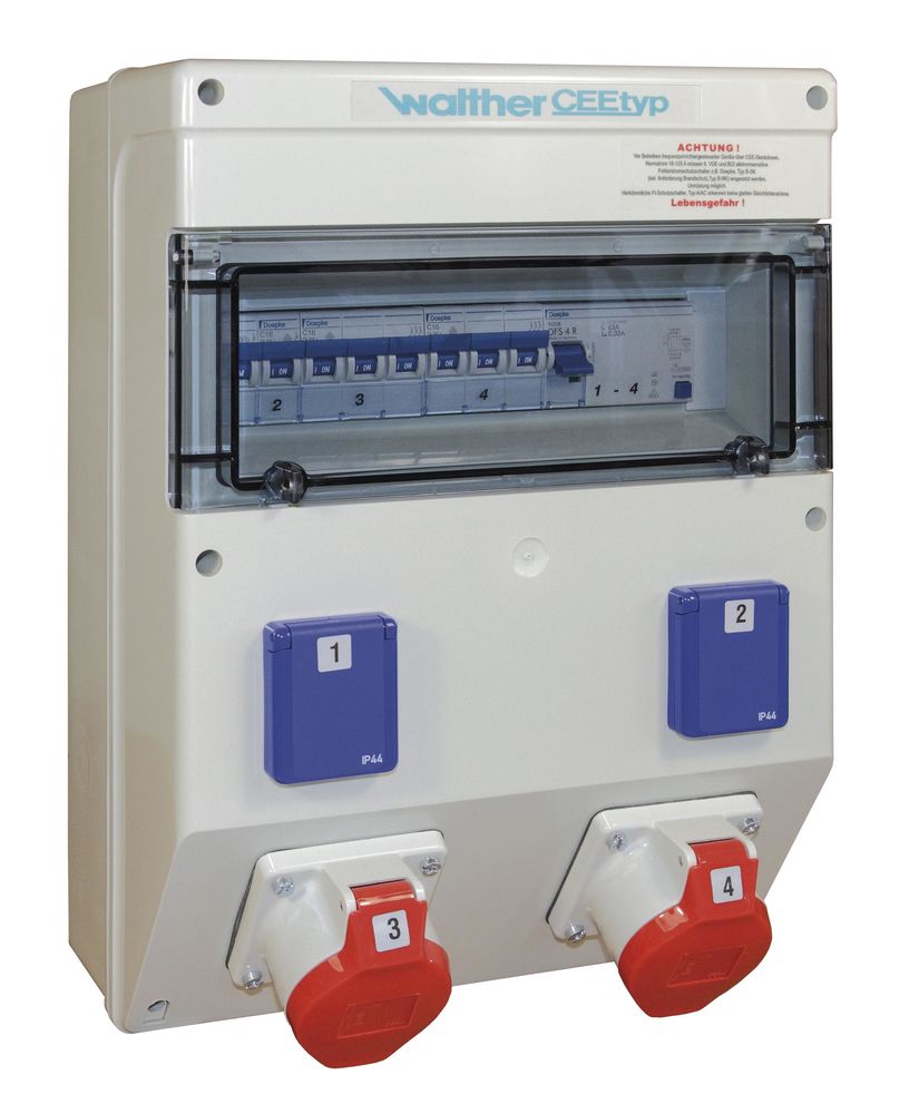 Walther Waterd.Plast.Combi 40A RCD-A 4MCB 2CEE Abg.2Schuko clamps
