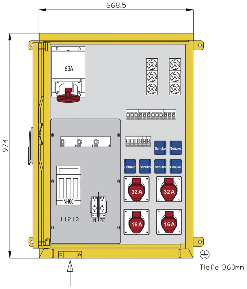 1 CEE surface-mounted box 63A 5P 400V 6h