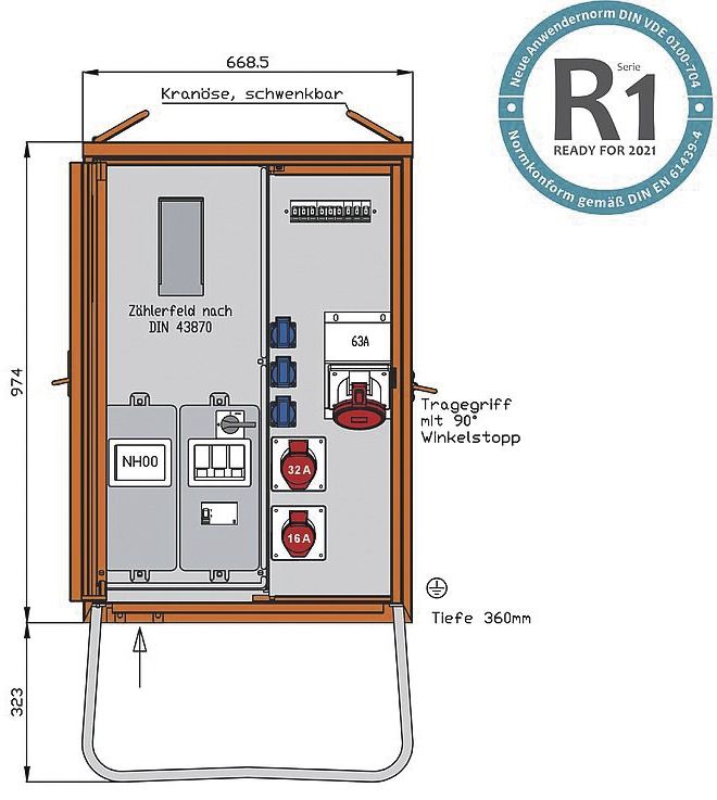 Walther connection cabinet 44kVA meter plate RCD type B 5 LS 3 CEE outlet