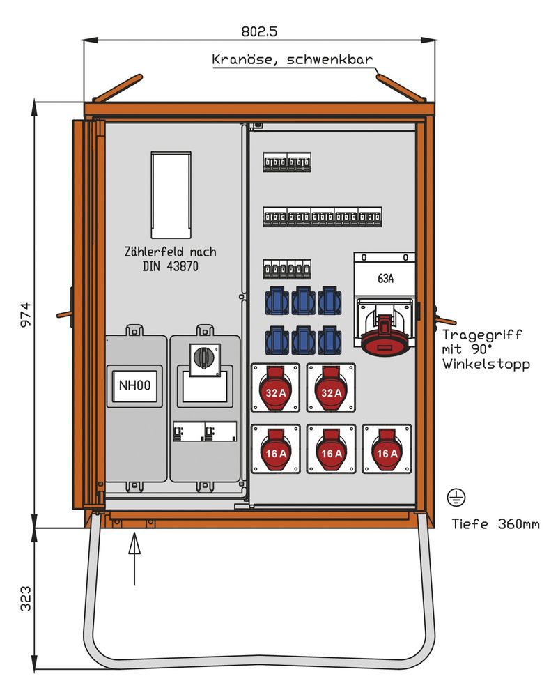 1 CEE panel box 63A 5P 400V 6h