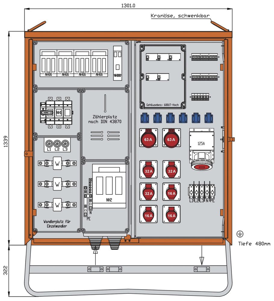 1 CEE mounting box 125A 5P 400V 6h
