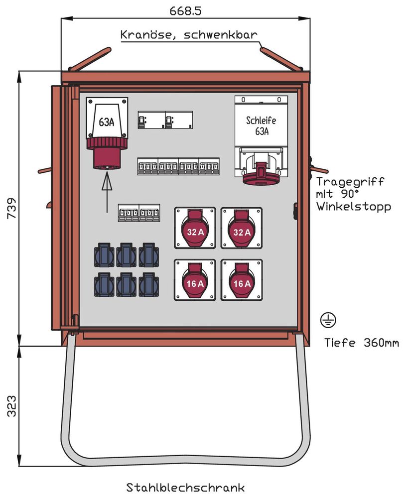 1 CEE attachment box 63A 5P 400V 6h