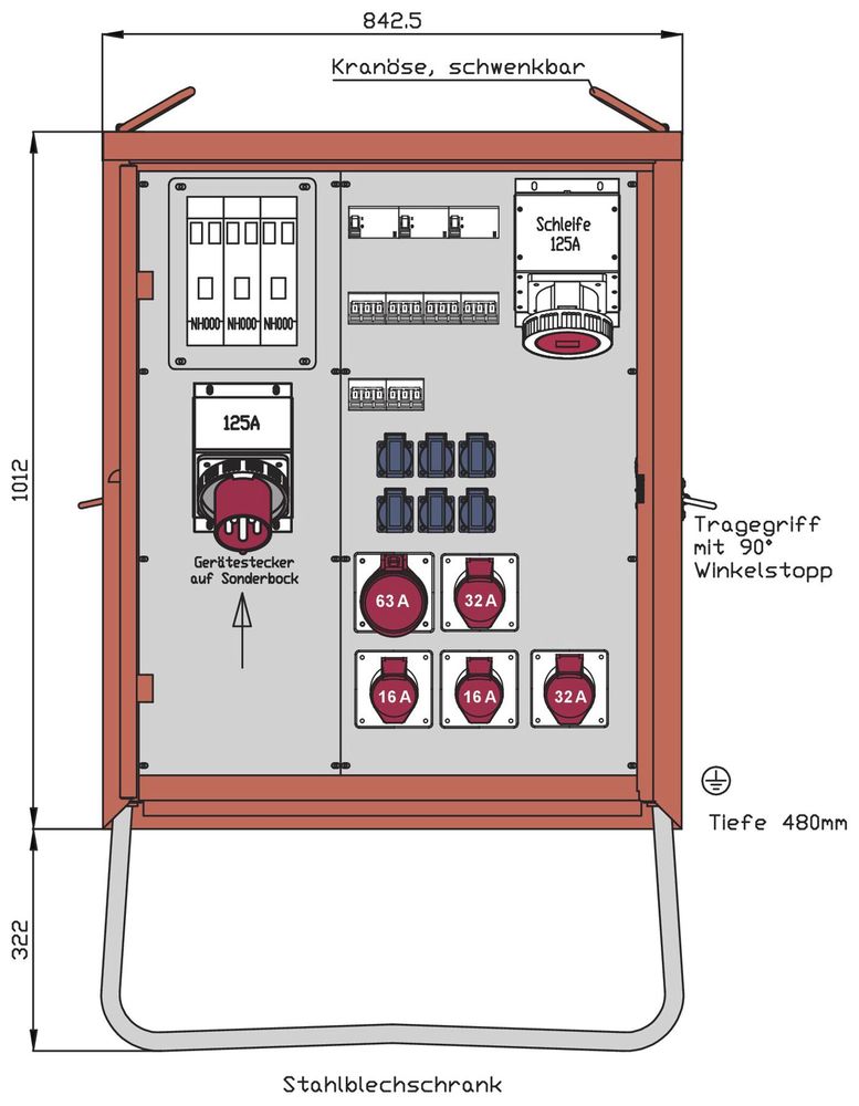 Walther end distributor 87kVA attachment plug 125A 2 RCDs type B RCD