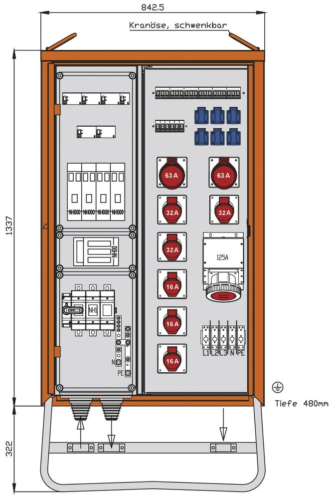 Walther distribution cabinet 139kVA 3 RCDs type B 2 RCDs type A 12 LS 9