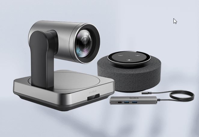 BYOD room system for medium-sized rooms- 1x UVC84 4K, 12x optical USB PTZ camera with power supply, cables and wall mount- 1x VCR20 remote control- 1x CP965 USB hands-free device-