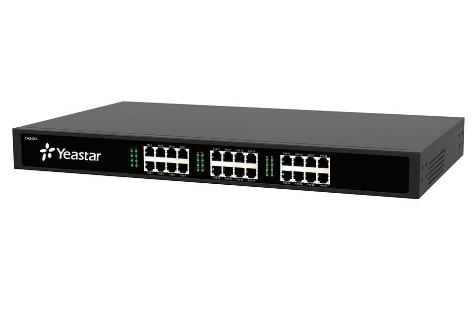 Yeastar TA2400 is a high-quality 24 FXS ports analog VoIP gateway that connects branch offices and multi-tenant buildings to an IP network, realizing substantial savings on inter-office long distance calls.