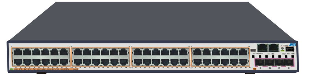 The ZXR10 5950 -L Series switch is 1RU height all gigabit routing stackable switch for carrier access and aggregation scenarios. It provides up to 52 interfaces (48 GE+ 4 10GE). With VSC2.0 (Virtual Switch Cluster), it delivers improved resilience and flexibility. The ZXR10 5950-L Series switch supports full IEEE 802.3at Power over Ethernet Plus (PoE+) to fulfill more carrier access scenarios. Zero-touch provisioning, IEEE 802.3az Energy Efficient Ethernet (EEE) make the network not only easy for maintenance but also low consumption.