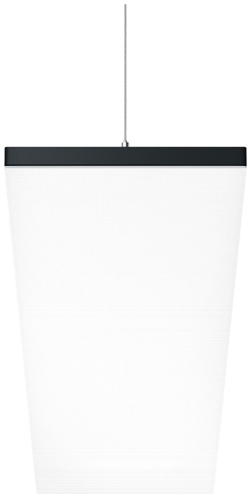 Frameless direct/indirect LED pendant light with MPO+ micropyramid optics and separately controllable indirect light for ceiling illumination with batwing light distribution. Luminaire power: 64.7 W, DALI controllable luminaire with LED converter, LED service life 100,000 h until luminous flux drops to 95% of the initial value. Color tolerance (initial MacAdam): 3. Luminaire luminous flux: 7120 lm, luminaire luminous efficacy: 110 lm/W. Color rendering Ra > 90, color temperature 4000 K. Direct/indirect beam characteristics in a ratio of 70:30, LEDs coupled in on both sides, light control based on highly efficient LitePrint(R) fiber optic technology in combination with multi-layer MPO+ micropyramid optics with a seamless appearance and defined light extraction for glare-free light distribution with UGR < 19 and L65 < 3000 cd/m² in accordance with EN 12464, reduced luminance at steep angles to reduce glare from steeply inclined displays and for maximum flexibility, homogeneous resolution of the LED light points, uniform indirect light distribution optimized for a low suspension height of at least 50 cm. Smooth outer cover made of high-purity polymethyl methacrylate, low sensitivity to dirt and easy to clean thanks to the smooth outer cover. High-quality luminaire housing made of sheet steel, powder-coated with all-round optical frame without seams or joints in . Rope suspension set with transparent connecting cable must be ordered separately. Suspension height is infinitely adjustable. Luminaire wired halogen-free, dimensions: 1446 x 267 x 50 mm, weight: 11.3 kg.
