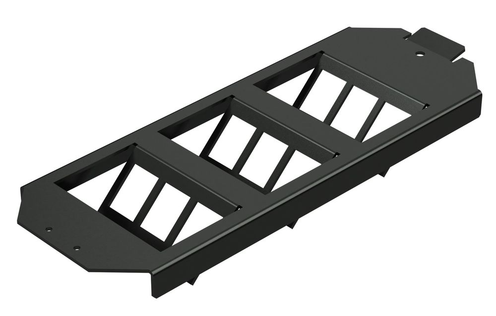 The Keystone floor tank carrier replaces the equipment carrier and thus offers the greatest possible space in the cable feed. The slanted inlet and outlet enables safe cable routing even on very low intermediate floors. The installation plates are attached to the support plate with two screws