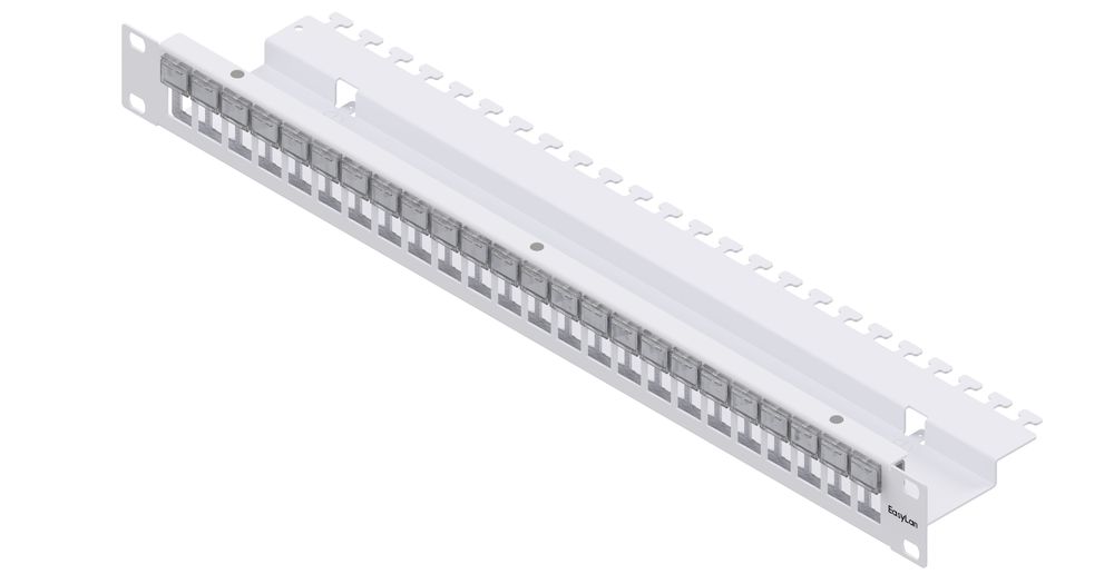 The 19' 1HE distribution panel can be connected with up to 24 preLink® / fixLink® RJ45 keystone modules. The distribution field is constructed on two levels. This means the modules are flush in the front panel. The distribution panel can be ordered either in stainless steel or powder-coated sheet iron. The mounting material and the keystone modules are not included in the scope of delivery.